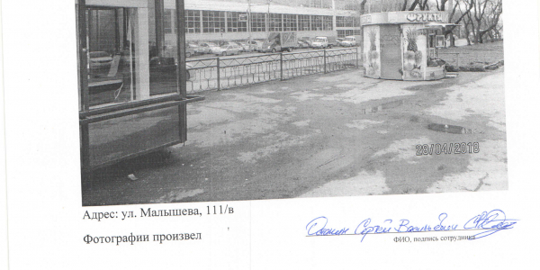 Номер жалобы:33731 Тип жалобы:Прочее Название объекта:. Регион:Свердловская область Город:Екатеринбург Адрес:ул. Малышева, 111в Описание жалобы:Реклама на остановке Гагарина, возможно несанкционированная. Статус: