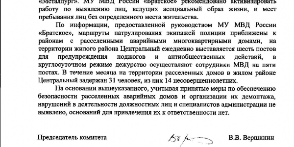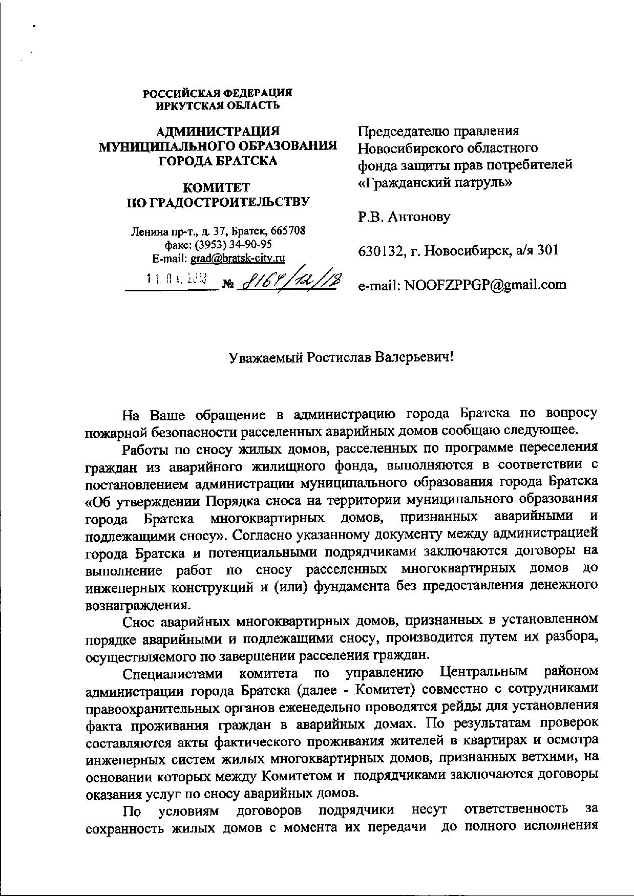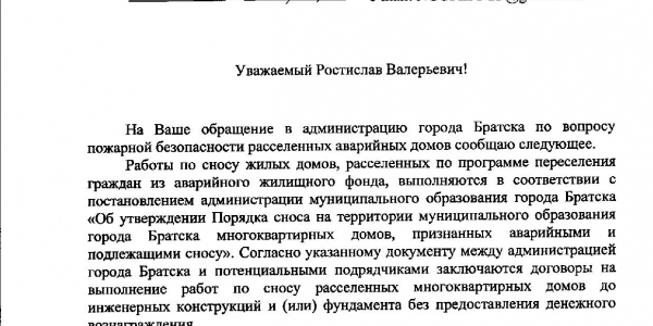 Номер жалобы:32567 Тип жалобы:Прочее Название объекта:Пожарный Надзор, Прокуратура Регион:Иркутская область Город:Братск Адрес:ул. Подбельского, 18 Описание жалобы:Регулярные пожары в деревянных расселённых домах 1 мкр центрального района Братска. Не обеспечена пожарная безопасность и ограждение заброшенных зданий. Рядом жилые дома, в том числе деревянные Статус: