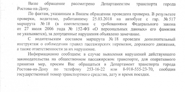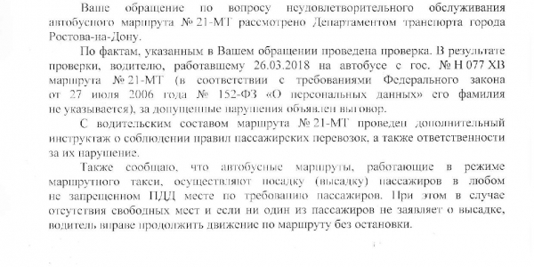 Номер жалобы:32603 Тип жалобы:Прочее Название объекта:Департамент транспорта г.Ростов-на-Дону Город:Ростов-на-Дону Адрес:автобус Описание жалобы:Дата и время нарушения 25.03.2018 15:49