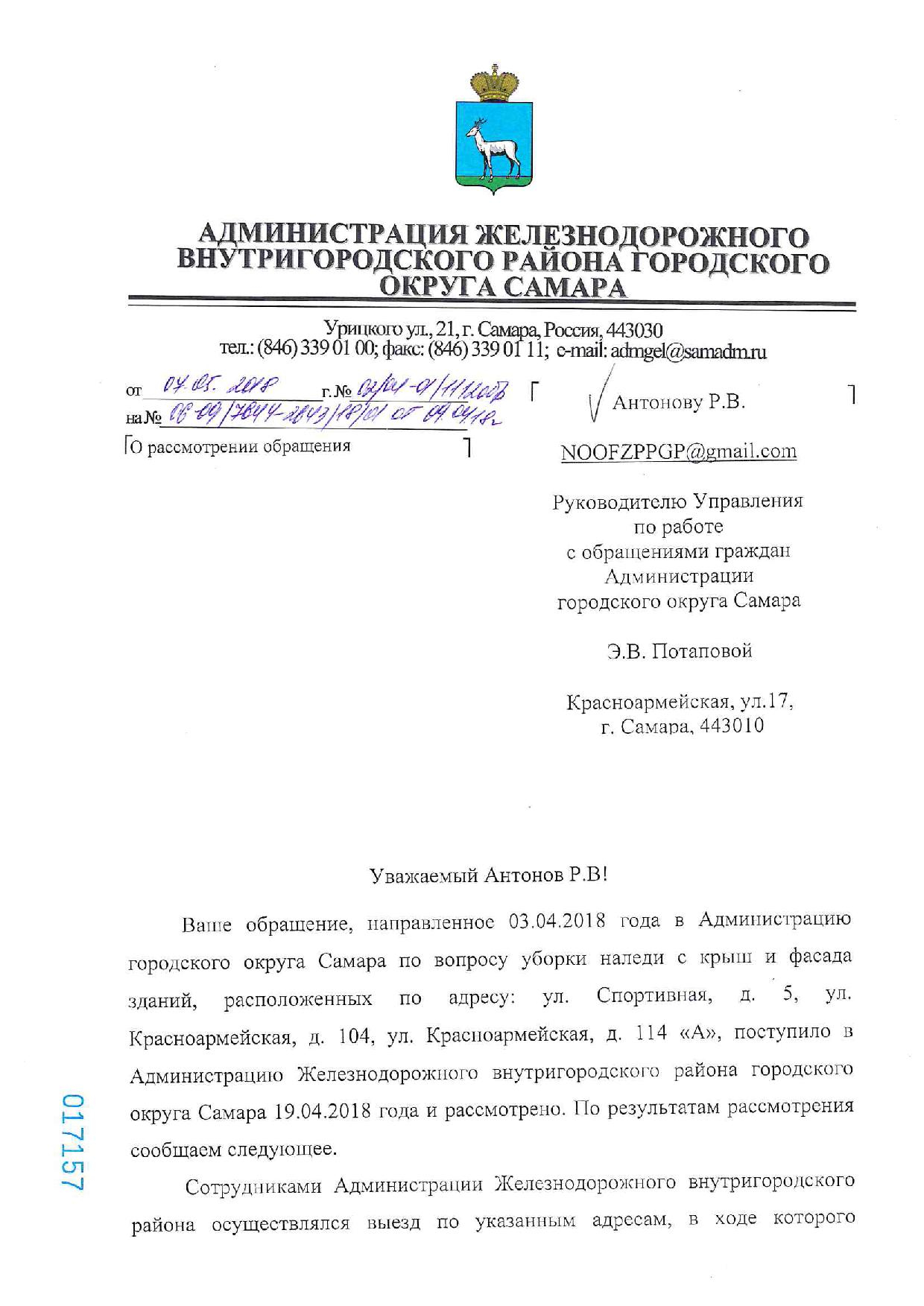 Номер жалобы:32546 Тип жалобы:Прочее Название объекта:Мэрия Регион:Самарская область Город:Самара Адрес:ул. Спортивная, 5 Описание жалобы:Сосульки на адм здании Статус: