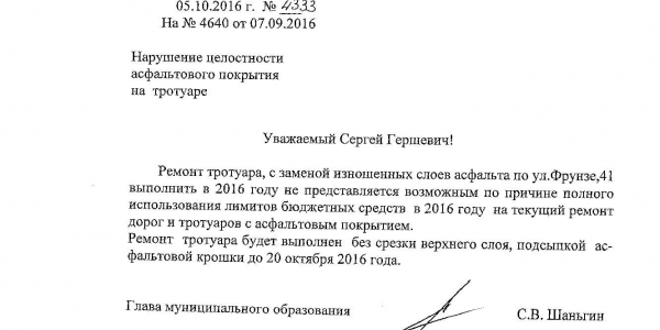 Номер жалобы:8406 Тип жалобы:Ямы на тротуарах Название объекта: Регион:Свердловская область Город:Алапаевск Адрес:Фрунзе, 41 Описание жалобы:Ямы на тротуаре Статус: