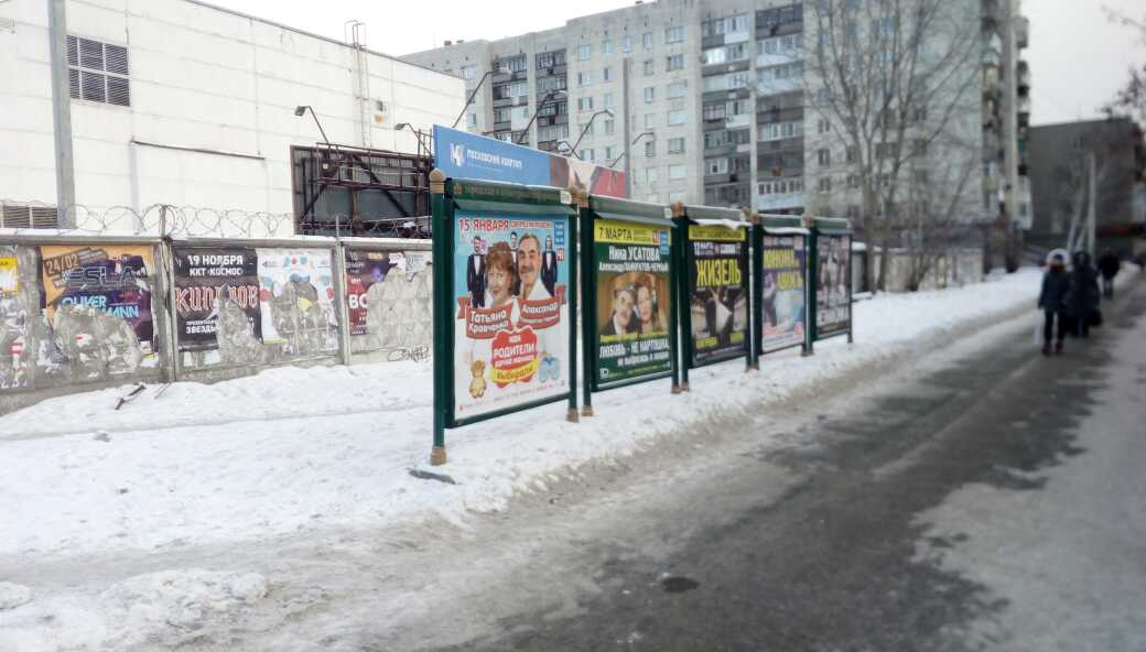 Номер жалобы:32499 Тип жалобы:Прочее Название объекта:. Регион:Свердловская область Город:Екатеринбург Адрес:ул. Серафимы Дерябиной, 43 Описание жалобы:Афишные стенды Статус: