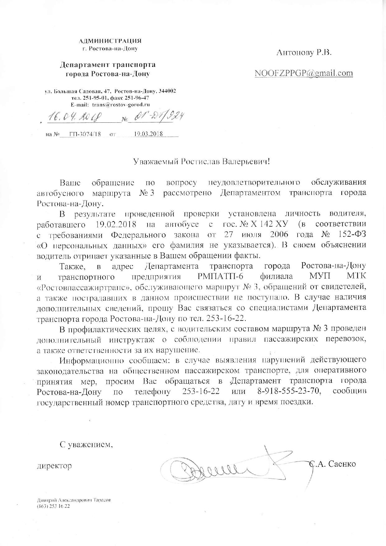 Номер жалобы:31647 Тип жалобы:Прочее Название объекта:Департамент транспорта г.Ростов-на-Дону Город:Ростов-на-Дону Адрес:Нариманова Описание жалобы:Дата и время нарушения 19.02.2018 14:15