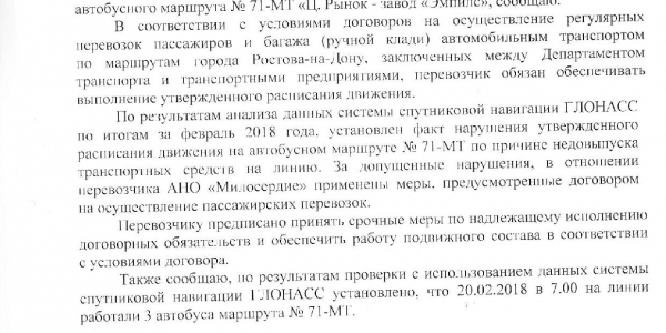 Номер жалобы:31650 Тип жалобы:Прочее Название объекта:Департамент транспорта г.Ростов-на-Дону Город:Ростов-на-Дону Адрес:ост.Миронова Описание жалобы:Дата и время нарушения 20.02.2018 17:45