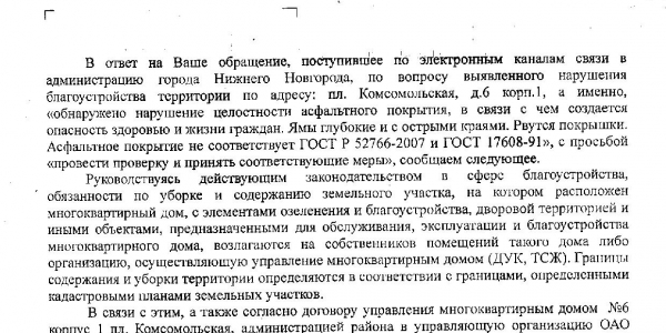 Номер жалобы:34570 Тип жалобы:Ямы во дворе Название объекта:Администрация Ленинского района Регион:Нижегородская область Город:Нижний Новгород Адрес:пл. Комсомольская д.6 корп 1 Описание жалобы:Ямы глубокие и с острыми краями. Рвутся покрышки. Статус:
