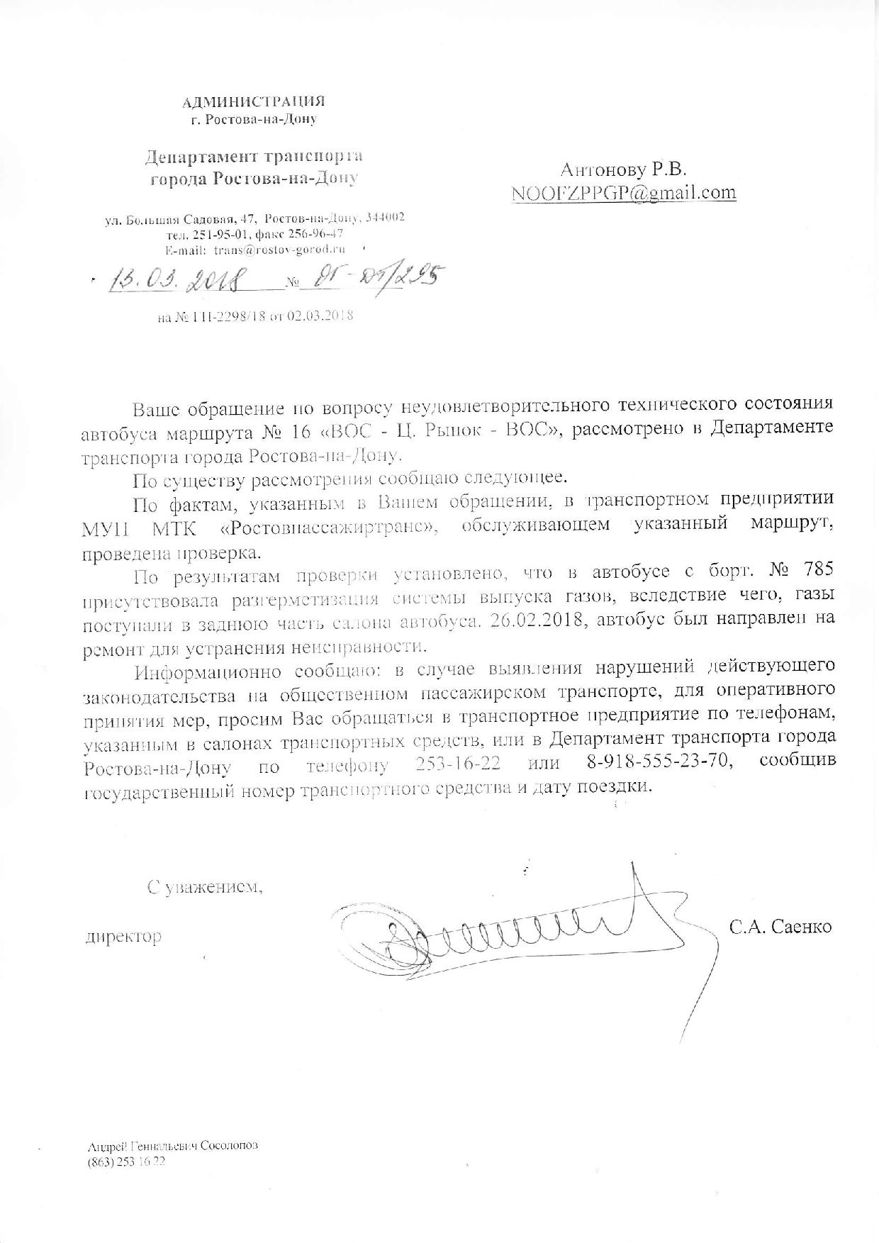 Номер жалобы:30700 Тип жалобы:Прочее Название объекта:Департамент транспорта г.Ростов-на-Дону Город:Ростов-на-Дону Адрес:Военвед Описание жалобы:Дата и время нарушения 16.02.2018 09:50