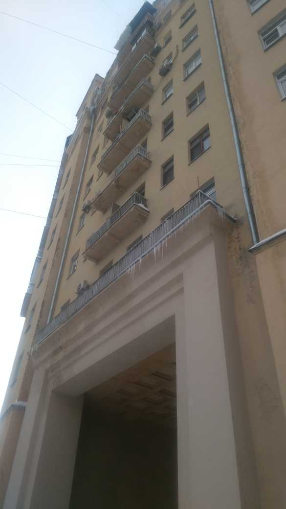 Номер жалобы:29744 Тип жалобы:Прочее Название объекта:Ук Регион:Москва Город:Москва Адрес:Камергерский пер., 2 корпус 1 Описание жалобы:Сосульки Статус: