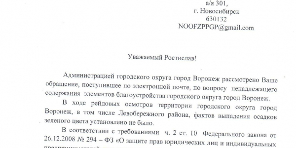 Номер жалобы:29681 Тип жалобы:Прочее Название объекта:Ук Регион:Воронежская область Город:Воронеж Адрес:Р-298, Описание жалобы:Загрязнения среды Статус: