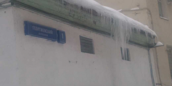Номер жалобы:29745 Тип жалобы:Прочее Название объекта:Ук Регион:Москва Город:Москва Адрес:Георгиевский пер., 1 строение 3 Описание жалобы:Сосульки Статус: