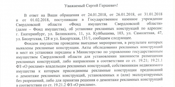 Номер жалобы:29204 Тип жалобы:Прочее Название объекта:Гражданский Патруль Регион:Свердловская область Город:Екатеринбург Адрес:ул. Куйбышева, 103 Описание жалобы:Незаконно установлены стенды с рекламой на газоне Статус: