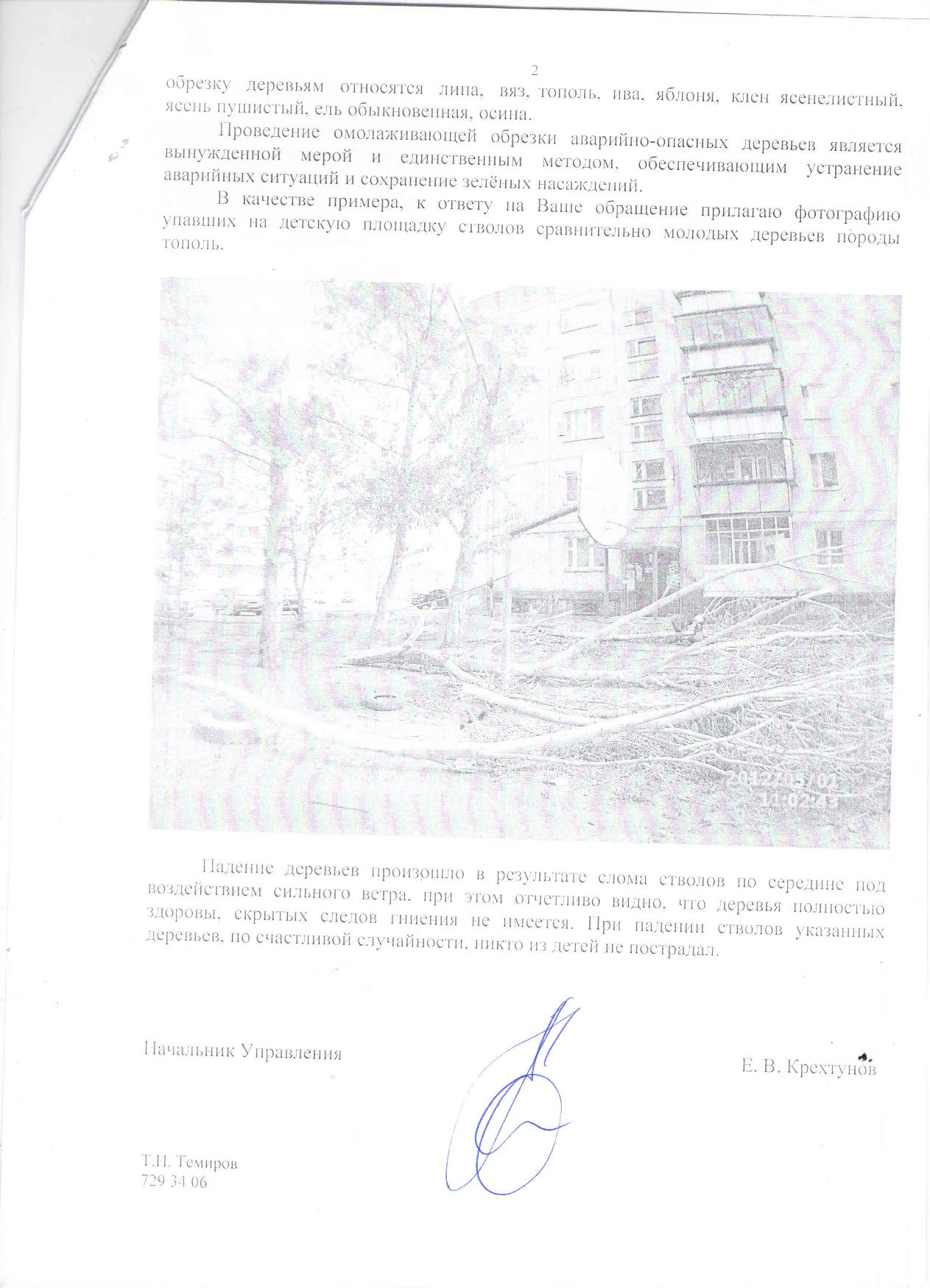 Нарушение 1. Согласно п. 4.1.4.5. Инструкции: "Омолаживание деревьев следует проводить постепенно - в течение 2 - 3 лет, начиная с вершины и крупных скелетных ветвей, и только у видов, обладающих хорошей побего-производительной способностью (липа, тополь, ива и др., из хвойных - ель колючая)." На прилагаемых фотографиях видно, что в результате обрезки были срезаны все ветви дерева, что является нарушением п. 4.1.4.5. Инструкции.