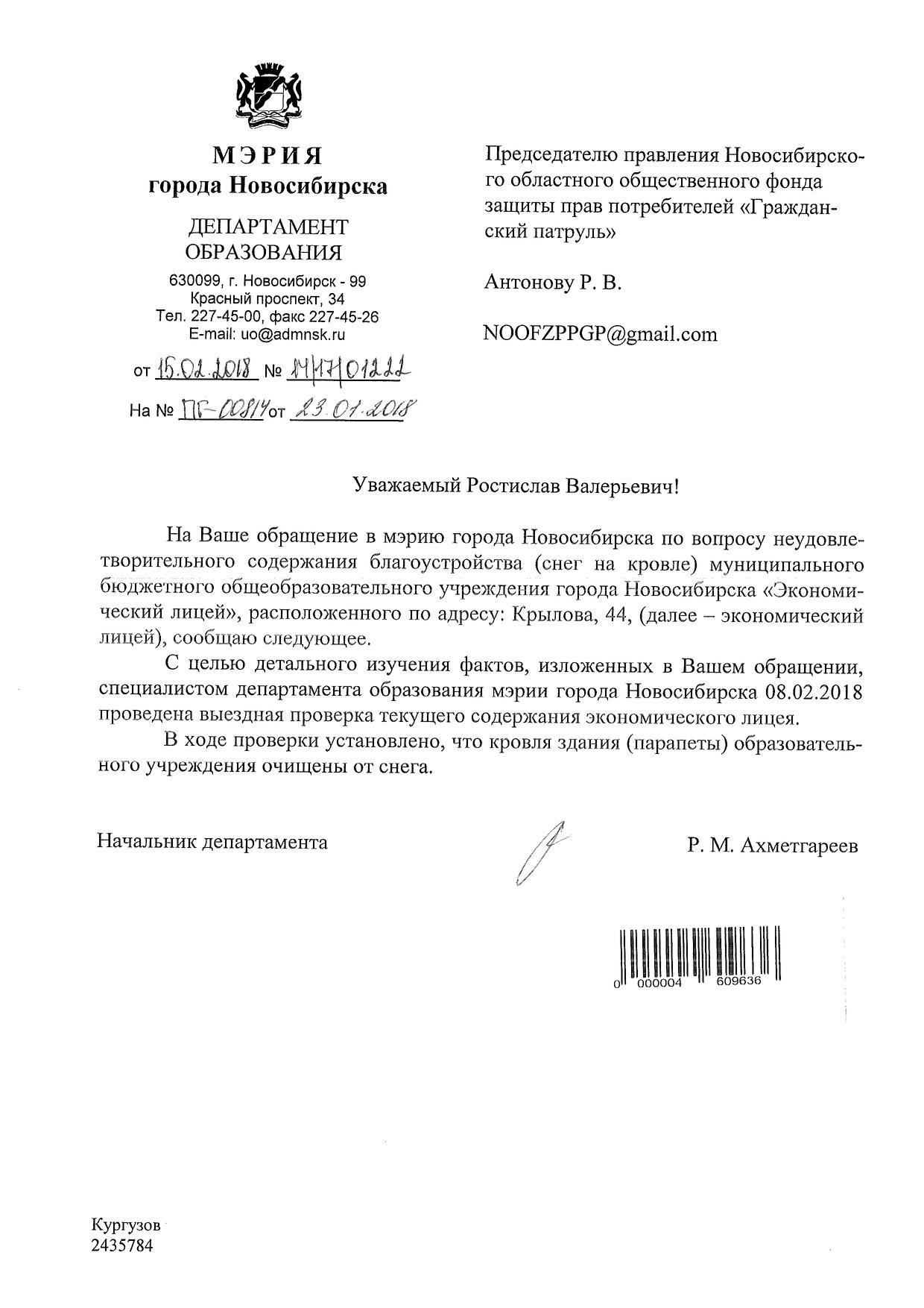 Номер жалобы:28903 Тип жалобы:Прочее Название объекта:Администрация Регион:Новосибирская область Город:Новосибирск Адрес:ул. Крылова, 36 Описание жалобы:Снег на крыше Статус: