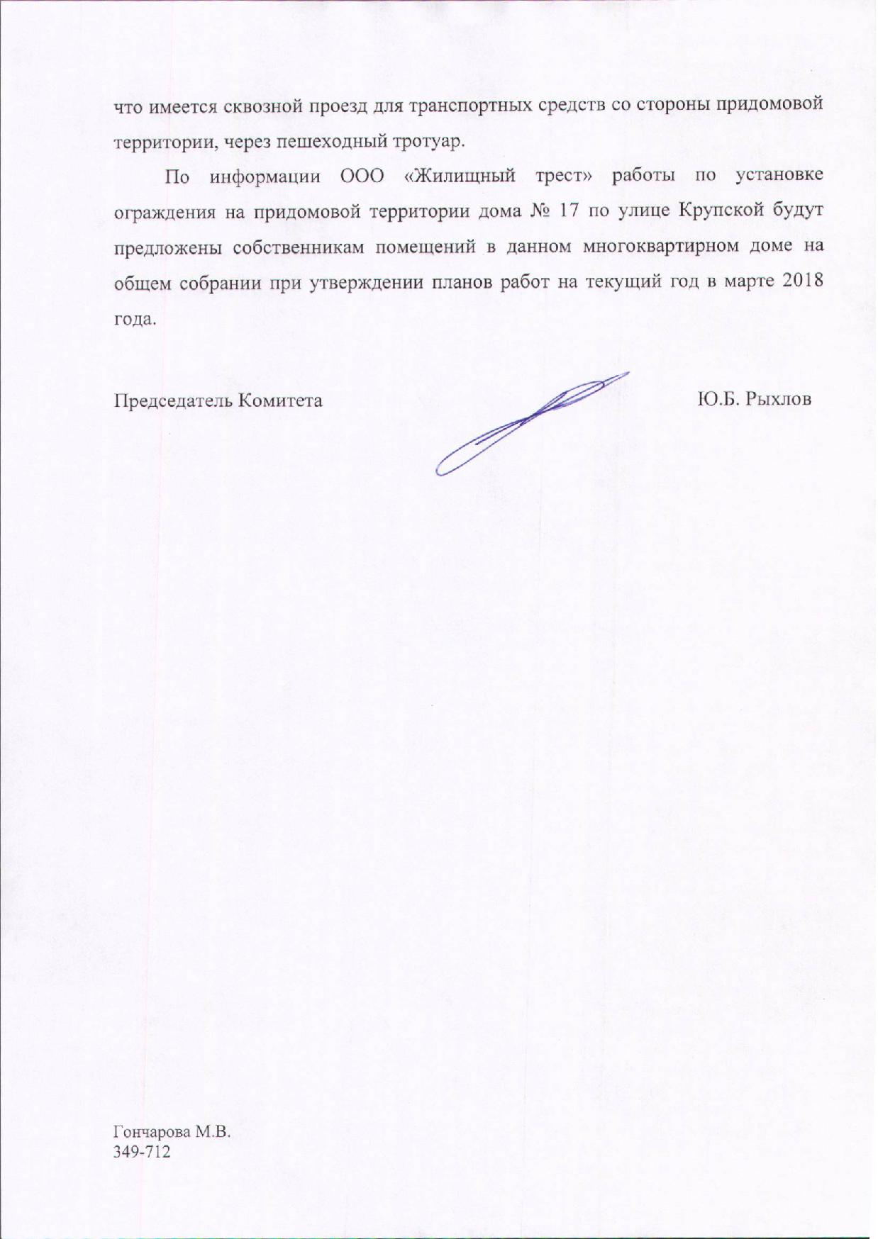 Номер жалобы:28424 Тип жалобы:Прочее Название объекта:- Регион:Свердловская область Город:Екатеринбург Адрес:улица Прониной, 27к1 Описание жалобы:В 2017 году территория строящегося многоквартирного жилого дома 27 по улице Прониной была обнесена забором. Согласно п. 143 Правил благоустройства территории муниципального образования «город Екатеринбург», ограждения в границах квартала по всей протяженности обращенных к улице сторон должны иметь единообразный вид, высоту и цветовое решение, гармонирующее с окружающей застройкой. Для многоквартирных жилых домов среднеэтажной и многоэтажной застройки, не образующих замкнутое единое дворовое пространство, а также при наличии внутри квартала объектов общественного назначения и транзитных пешеходных путей высота ограждения не должна превышать 0,9 м. Установка сплошных ограждений не допускается. Несмотря на то, что территория многоквартирного жилого дома 27 по улице Прониной не образует замкнутое единое дворовое пространство, она была обнесена сплошным забором высотой 1,8–1,9 м. Необходимо уменьшить высоту ограждения придомовой территории дома 27 по улице Прониной до 0,9 м. Статус: