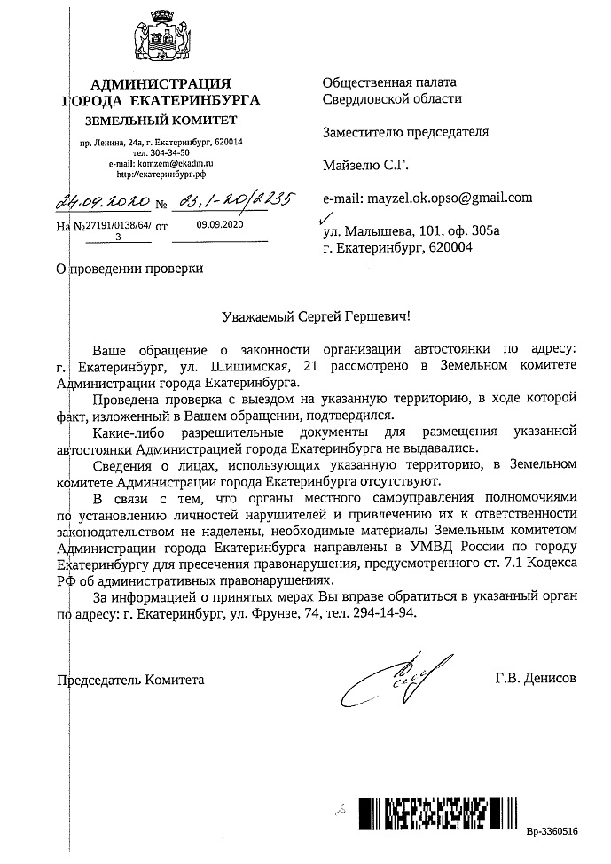 Номер жалобы:68838 Тип жалобы:Прочее Название объекта: Регион:Свердловская область Город:Екатеринбург Адрес:улица Чкалова, 1 Описание жалобы:Часть Парковки, где паркуется личный транспорт, около ГУ ГИБДД находится на муниципальной земле. Доступ на территорию для машин других горожан ограничен. Прошу оценить законность действий. В случае нарушения демонтировать ограждающие элементы. Статус:
