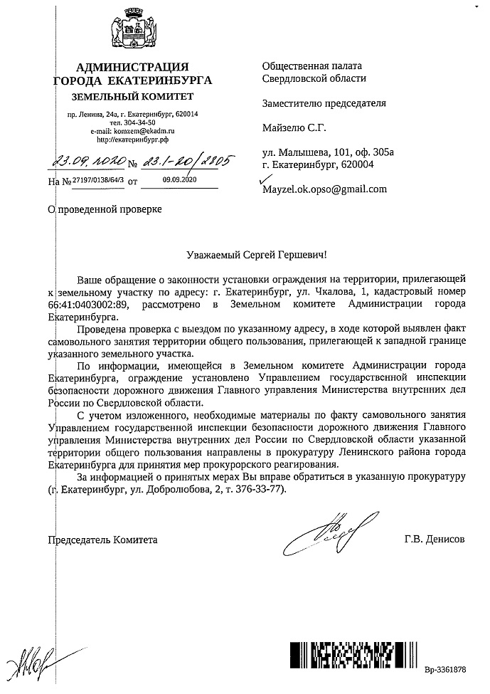 Номер жалобы:68817 Тип жалобы:Прочее Название объекта:мэрия Регион:Свердловская область Город:Екатеринбург Адрес:площадь Жуковского, 1 Описание жалобы:Незаконное ограждение земель общего пользования между домами № 1 по пл. Жуковского и № 7А по пер. Гончарному путём установки забора. Статус: