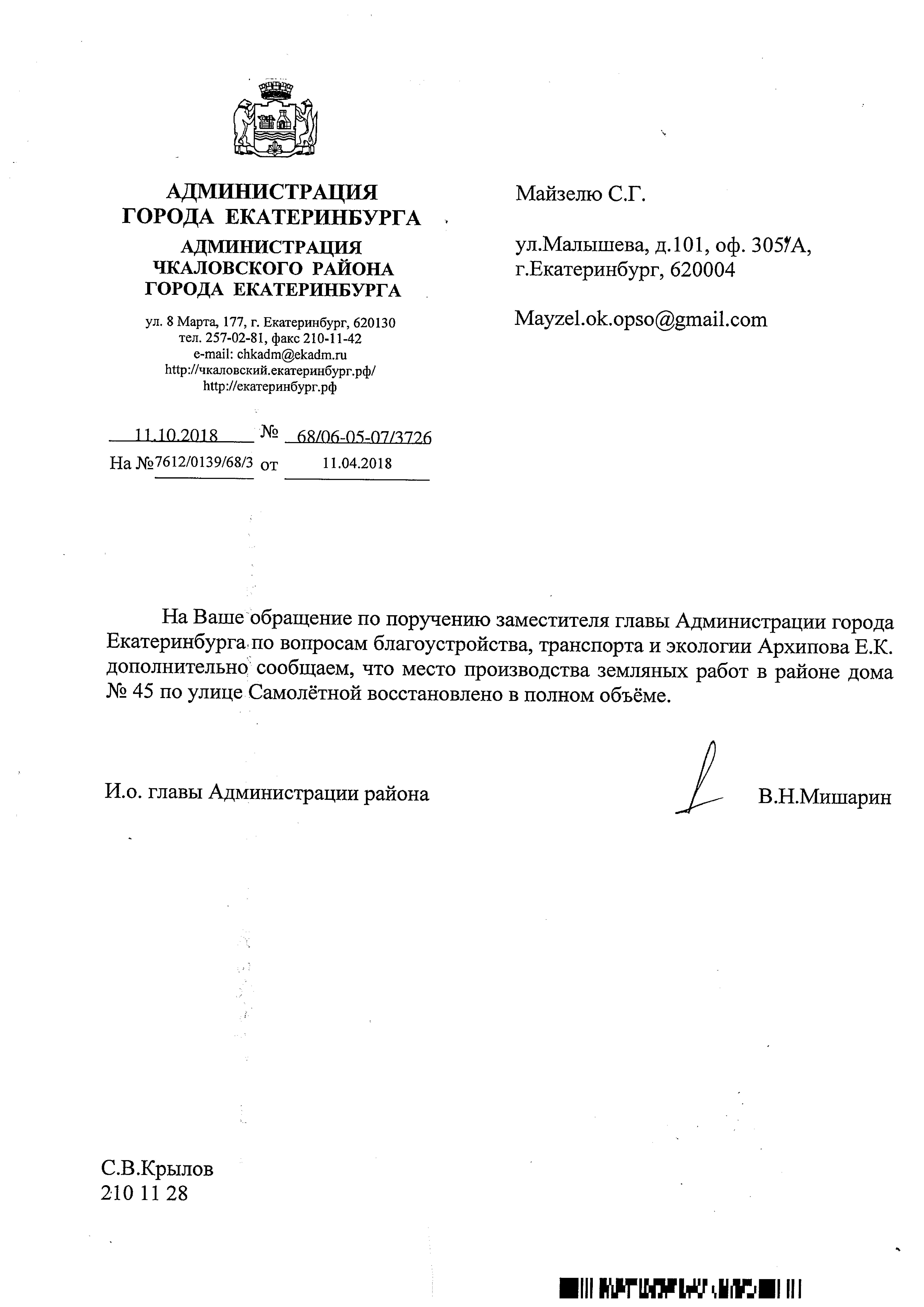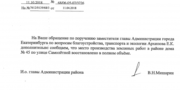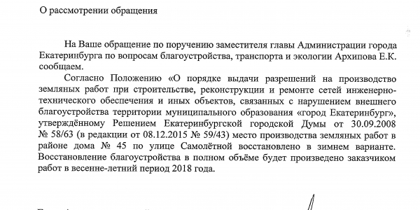 Номер жалобы:33094 Тип жалобы:Ямы во дворе Название объекта:Администрация Города Регион:Свердловская область Город:Екатеринбург Адрес:Самолетная ул., 45 Описание жалобы:Ремонт пешеходной зоны, Статус: