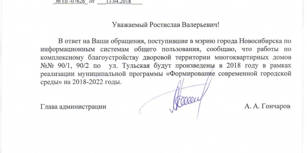 Номер жалобы:33082 Тип жалобы:Ямы во дворе Название объекта:Дорожные Службы Регион:Новосибирская область Город:Новосибирск Адрес:ул. Тульская, 90/1 Статус: