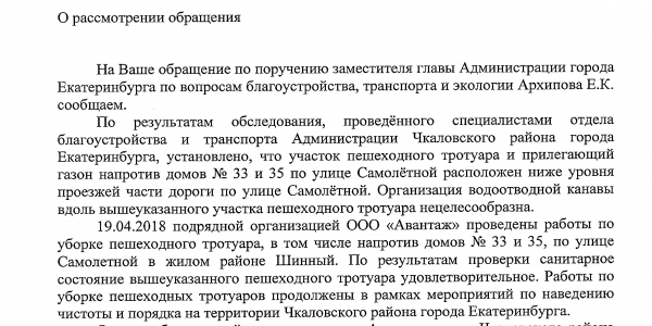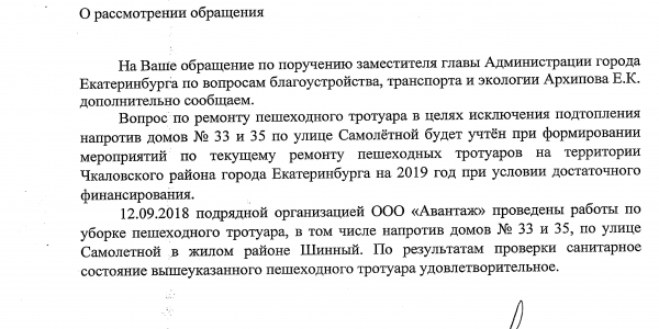 Номер жалобы:33105 Тип жалобы:Ямы во дворе Название объекта:Администрация Города Регион:Свердловская область Город:Екатеринбург Адрес:Самолетная ул., 33-35 Описание жалобы:Постоянно топит пешеходную зону. Ремонт Статус: