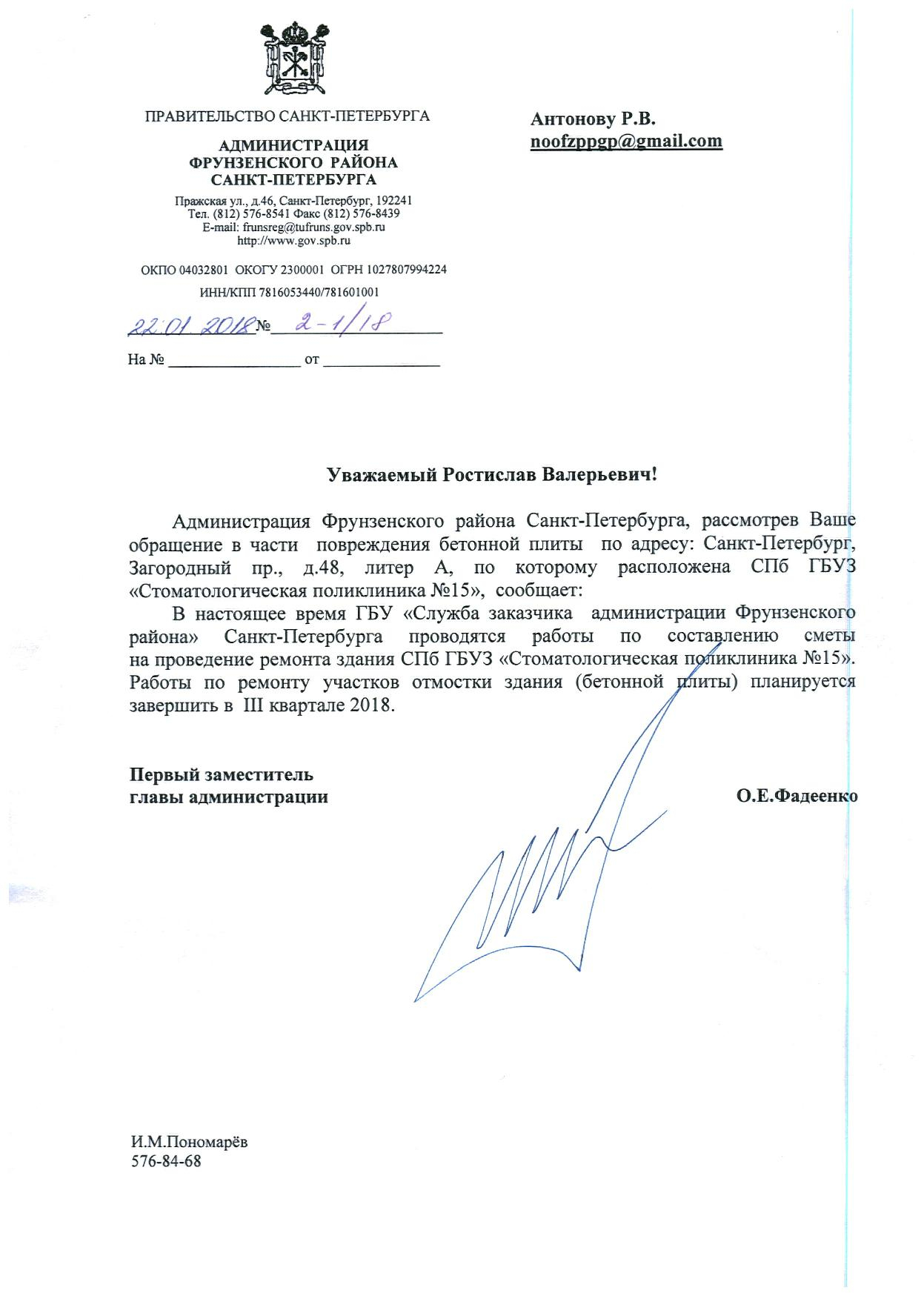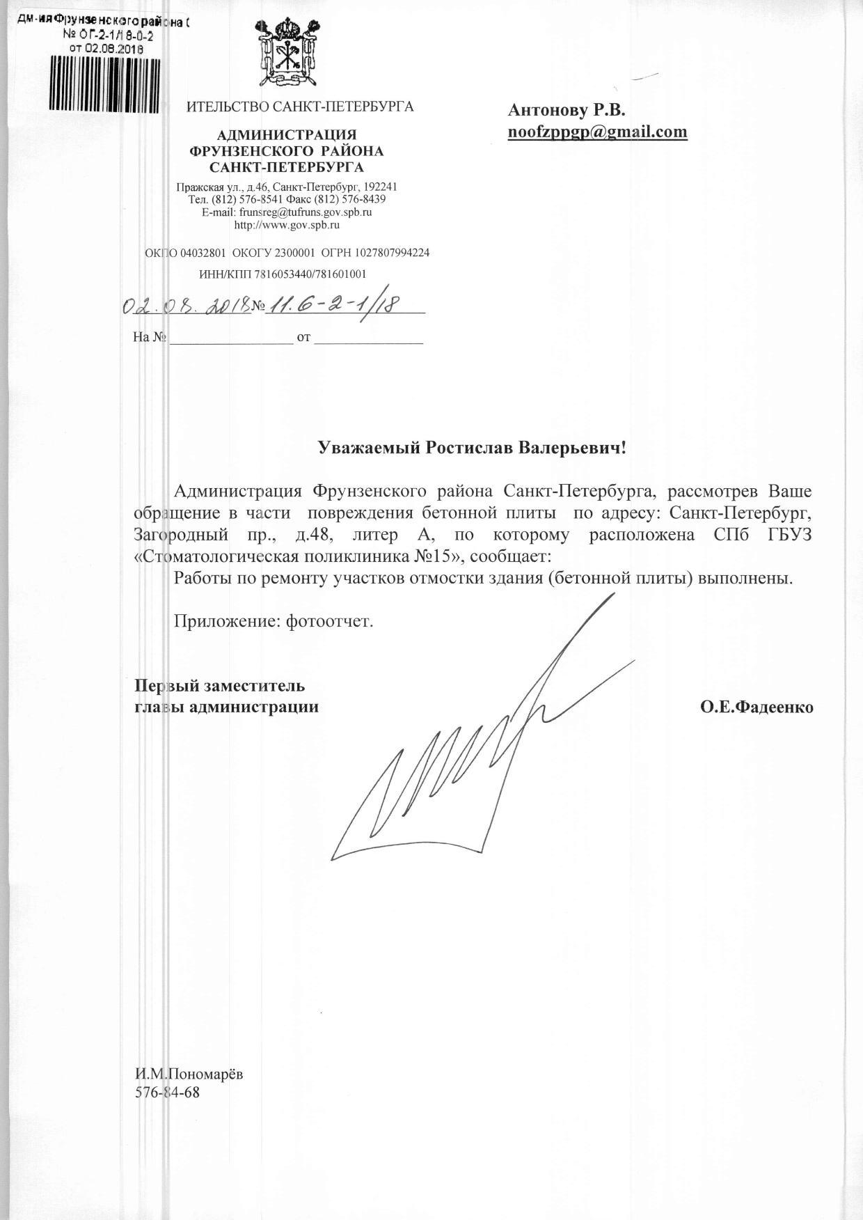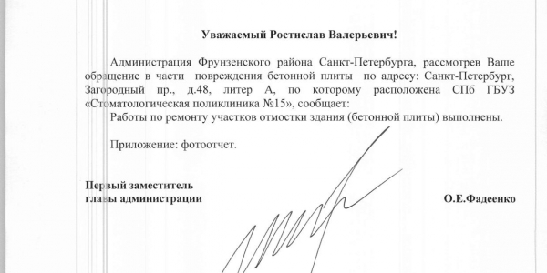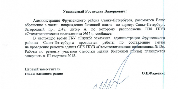 Номер жалобы:27946 Тип жалобы:Прочее Название объекта:Районная Администрация Город:Санкт-Петербург Адрес:Санкт-Петербург, Загородный проспект, 48 Описание жалобы:Разбито Статус: