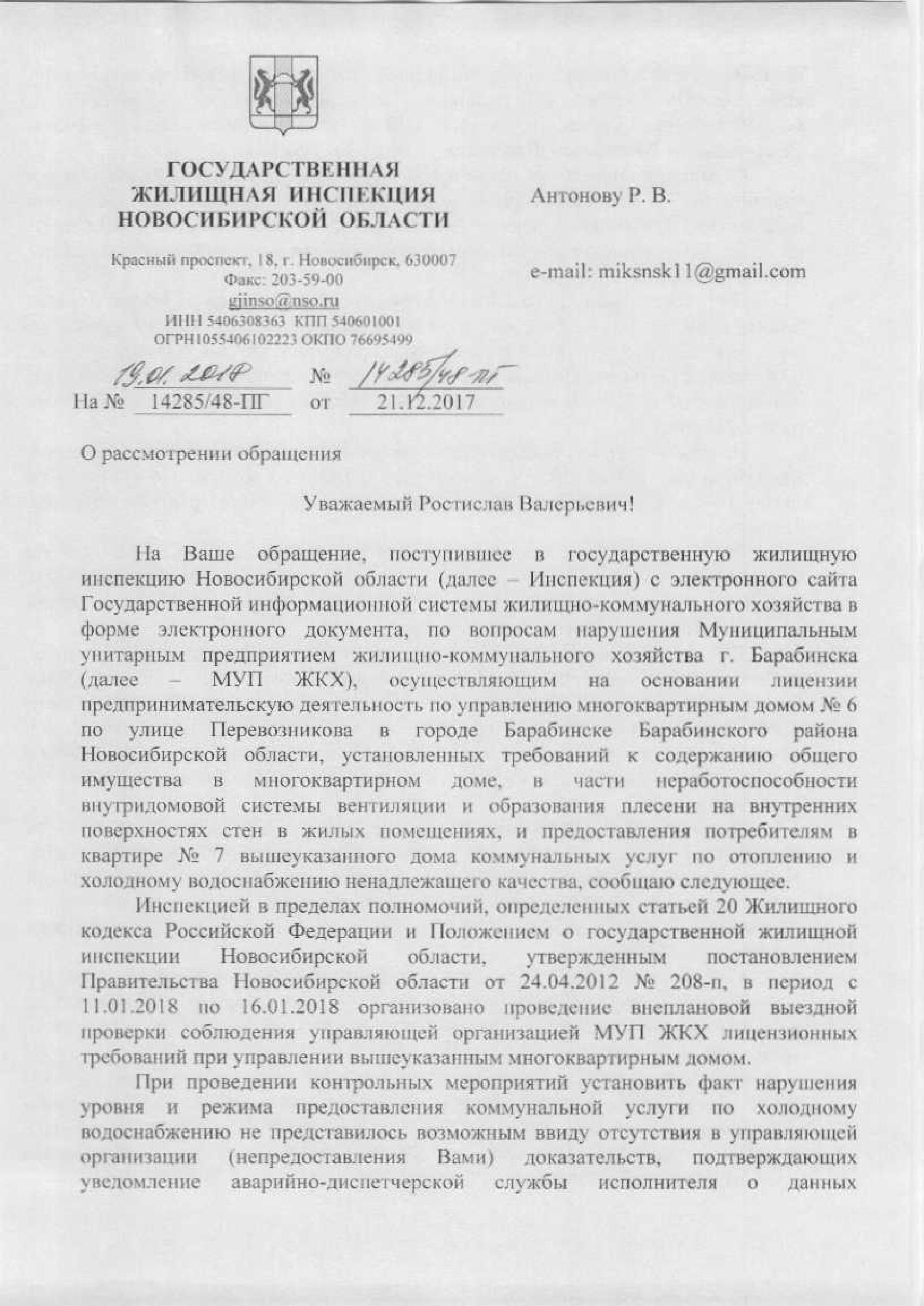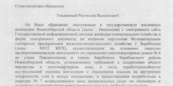Номер жалобы:27955 Тип жалобы:Прочее Название объекта:Муп ЖКХ Регион:Новосибирская область Город:Барабинск Адрес:ул. Перевозчикова, 6 Описание жалобы:Прошлой зимой было +18 в квартире, сейчас +16 перевозникова 6 кв 7 Статус: