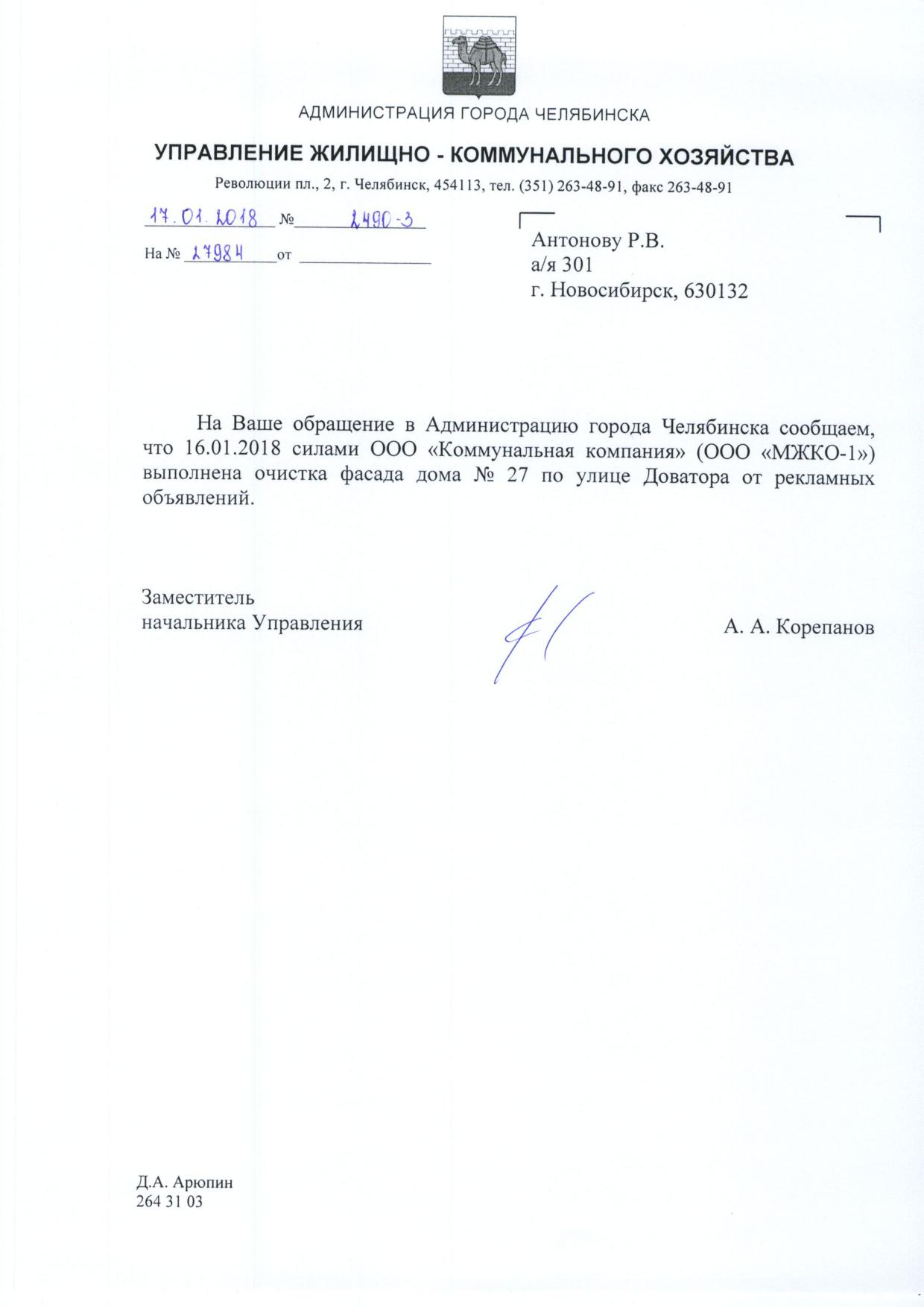 Номер жалобы:27982 Тип жалобы:Прочее Название объекта:Арсёнкин Вадим Петрович Город:Челябинск Адрес:Воровского 19 Описание жалобы:Видимо, сделать запрос о ее законности.