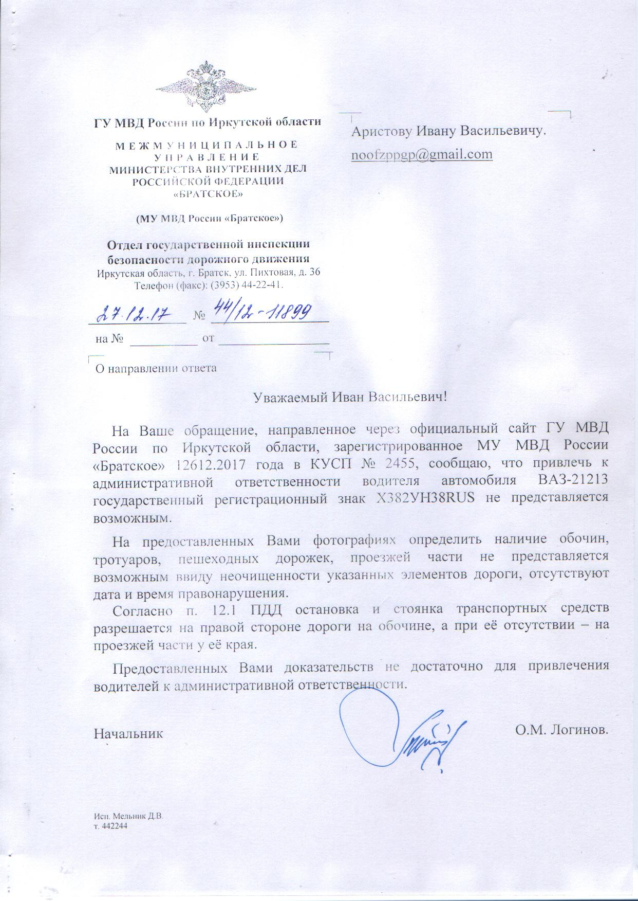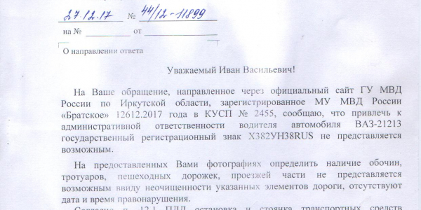 Номер жалобы:28003 Тип жалобы:Прочее Название объекта:ГИБДД Регион:Иркутская область Город:Братск Адрес:ул. Мира, 53 Описание жалобы:Стоянка, хранение авто на тротуаре Статус: