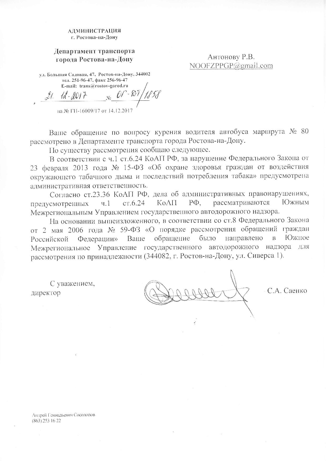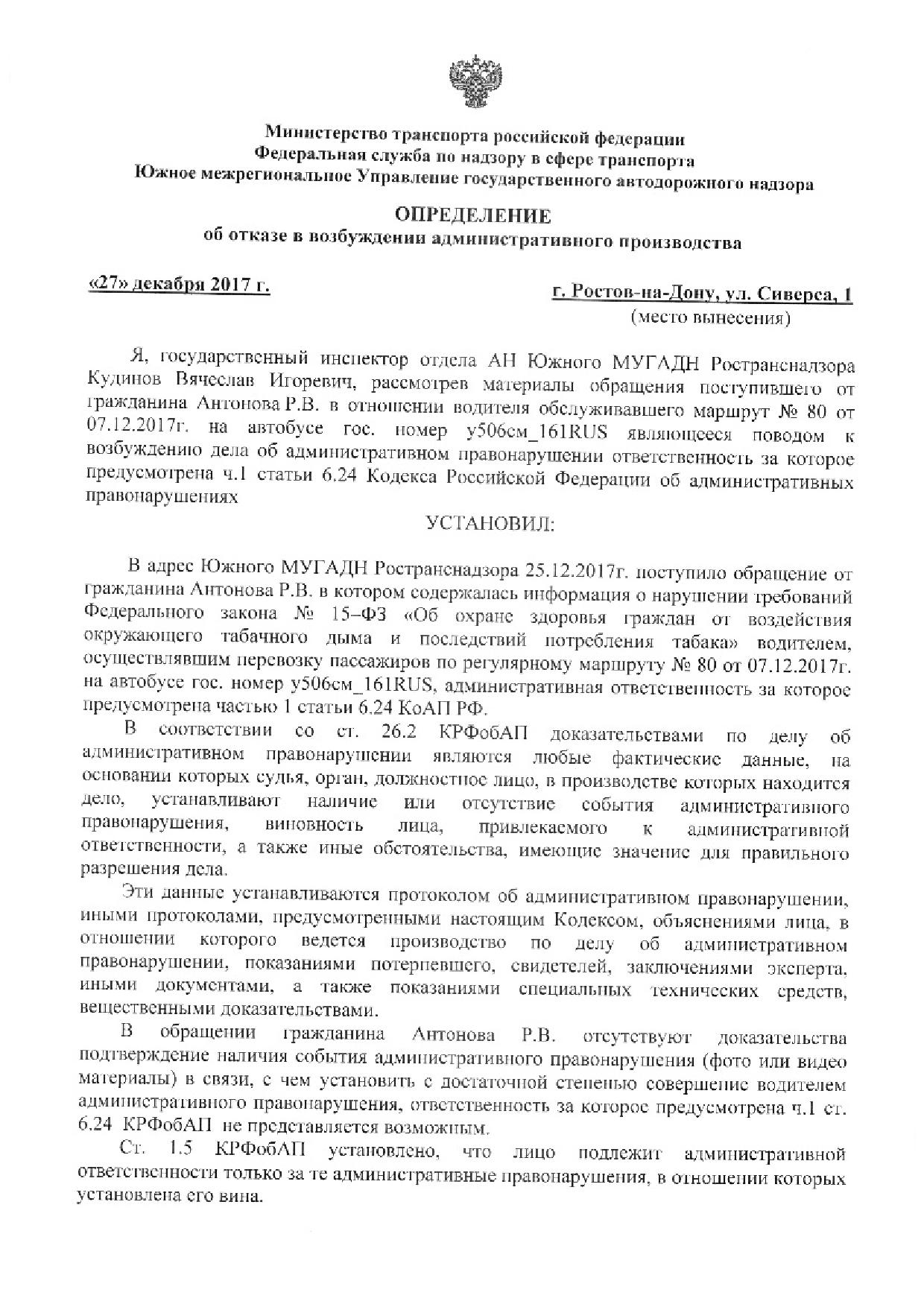 Номер жалобы:27775 Тип жалобы:Прочее Название объекта:Департамент транспорта г.Ростов-на-Дону Регион:Ростовская область Город:Ростов-на-Дону Адрес:По маршруту Описание жалобы:Дата и время нарушения 07.12.2017 16:00