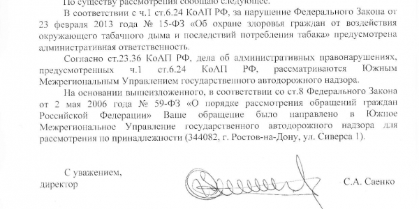 Виды нарушений: в салоне накурено