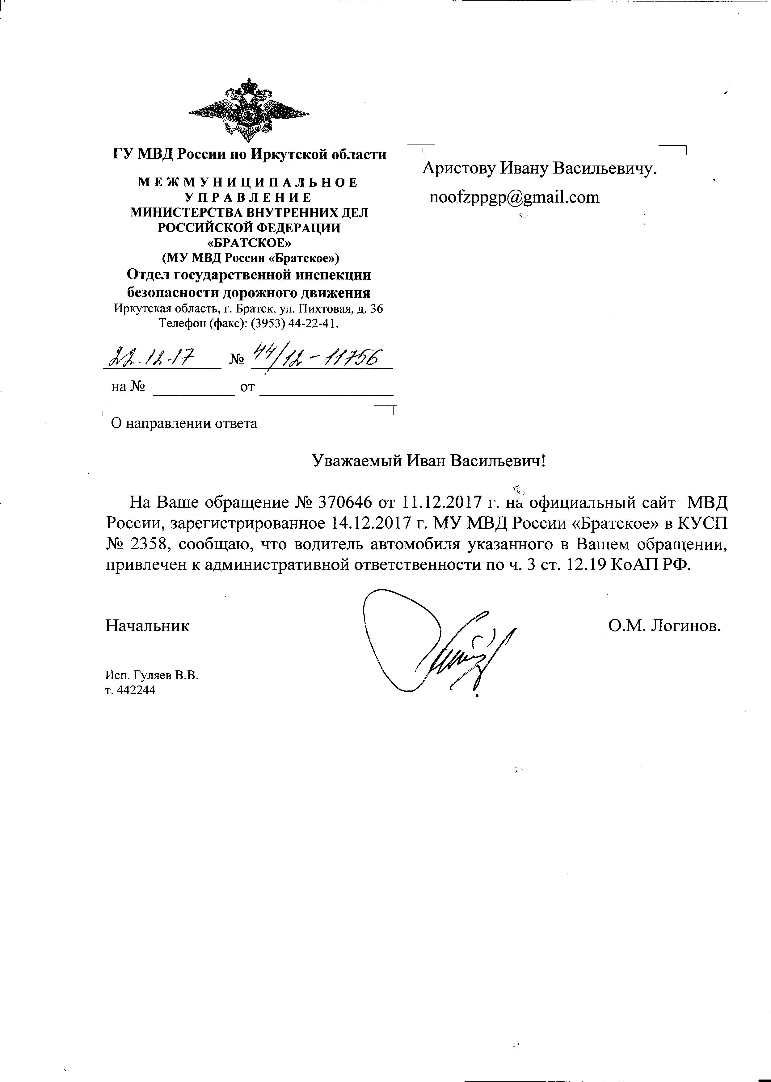 Номер жалобы:27752 Тип жалобы:Прочее Название объекта::ГИБДД Регион:Иркутская область Город:Братск Адрес:ул. Муханова, 28 Описание жалобы:Стоянка на тротуаре. 10.12.17, 14:20 Статус: