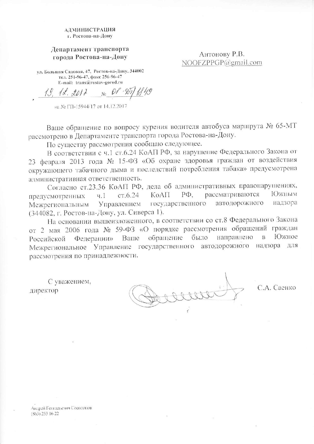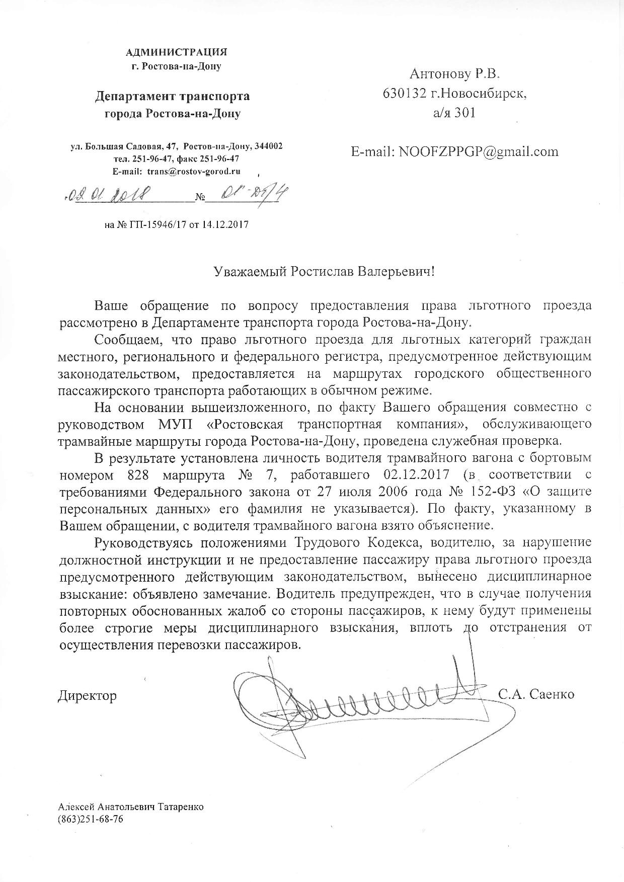Номер жалобы:27764 Тип жалобы:Прочее Название объекта:Департамент транспорта г.Ростов-на-Дону Регион:Ростовская область Город:Ростов-на-Дону Адрес:По маршруту Описание жалобы:Дата и время нарушения 04.12.2017 00:01
