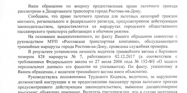 Номер жалобы:27759 Тип жалобы:Прочее Название объекта:Департамент транспорта г.Ростов-на-Дону Регион:Ростовская область Город:Ростов-на-Дону Адрес:По маршруту Описание жалобы:Дата и время нарушения 03.12.2017 07:03