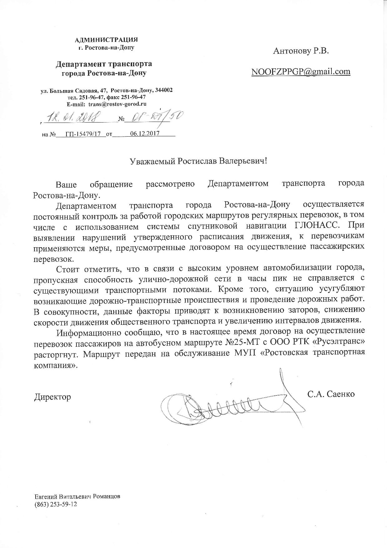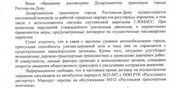 Номер жалобы:27563 Тип жалобы:Прочее Название объекта:Департамент транспорта г.Ростов-на-Дону Регион:Ростовская область Город:Ростов-на-Дону Адрес:По маршруту Описание жалобы:Дата и время нарушения 20.11.2017 08:50