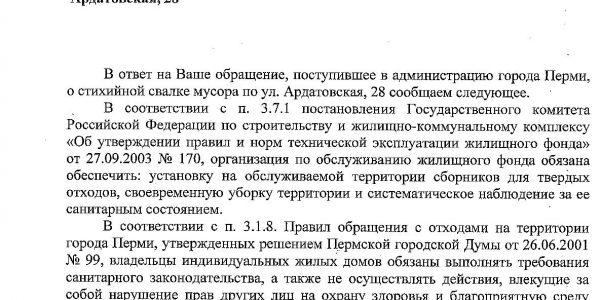 Номер жалобы:27567 Тип жалобы:Прочее Название объекта:Мусор Регион:Пермский край Город:Пермь Адрес:Ардатовская ул., 28 Описание жалобы:Куча мусора Статус:
