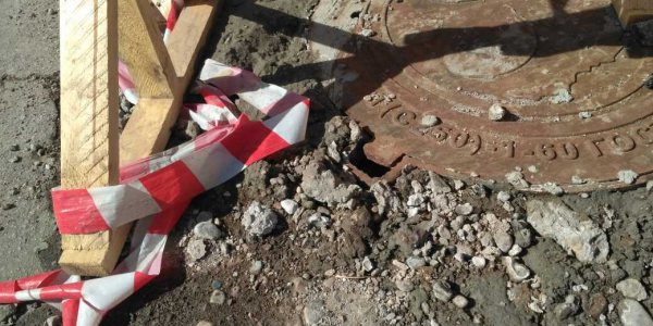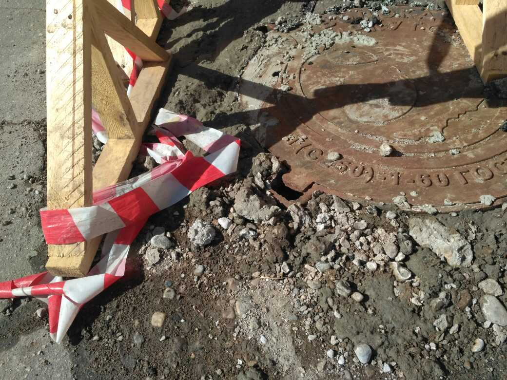С одой стороны люка осфальт просел, собирается вода. Сам люк выше уровня дорожки, создает трудности для колясок, инвалидных колясок. Статус: