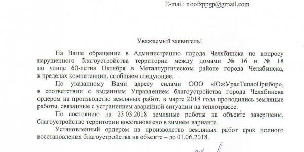 Номер жалобы:31846 Тип жалобы:Ямы во дворе Название объекта:Администрация Металлургического Района Регион:Челябинская область Город:Челябинск Адрес:ул. 60-летия Октября, 18 Описание жалобы:Между домами 18 и 16 на 60 лет Октября коммунальная техника повредила новый асфальт. Требуется устранение разрушений Статус: