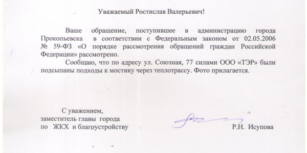 Номер жалобы:32515 Тип жалобы:Ямы во дворе Название объекта:1 Регион:Кемеровская область Город:Прокопьевск Адрес:ул. Союзная, 77 Описание жалобы:Установили мостик через теплотрассу, но подходы к нему не обустроить. Часто приходится ходить через грязт Статус: