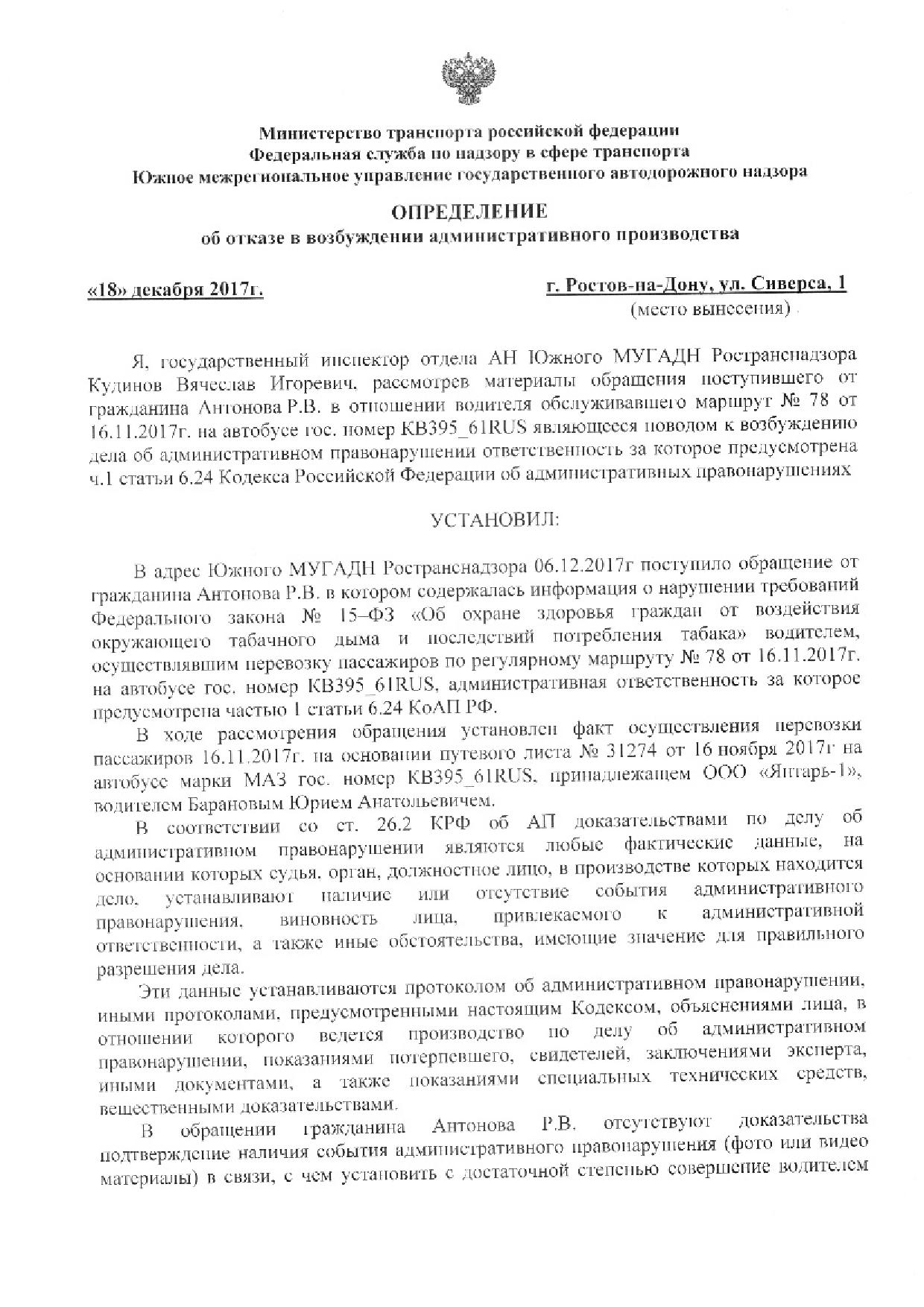 Номер жалобы:27191 Тип жалобы:Прочее Название объекта:Департамент транспорта г.Ростов-на-Дону Регион:Ростовская область Город:Ростов-на-Дону Адрес:По маршруту Описание жалобы:Дата и время нарушения 15.11.2017 19:30