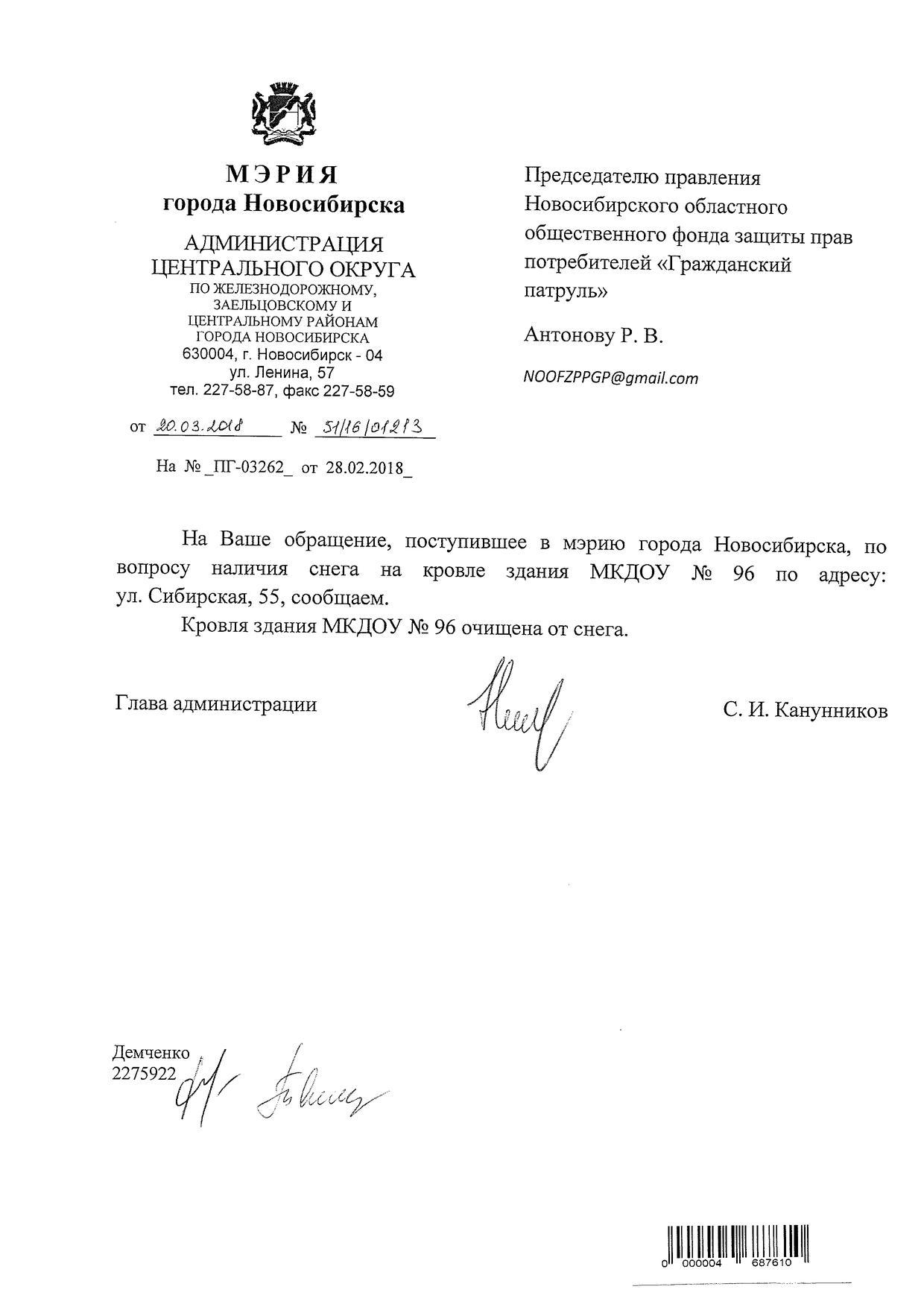 Номер жалобы:30724 Тип жалобы:Иные проблемы ЖКХ Название объекта:Управляющая Компания Регион:Новосибирская область Город:Новосибирск Адрес:пр. Димитрова, 18/65 Описание жалобы:Советская 65, снег на крыше дома Статус: