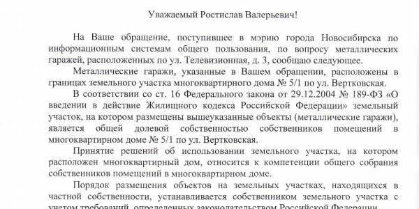 Номер жалобы:30532 Тип жалобы:Иные проблемы ЖКХ Название объекта:Управляющая Компания Город:Новосибирск Адрес:Новосибирск, Телевизионная улица, 3 Описание жалобы:Гаражи Статус: