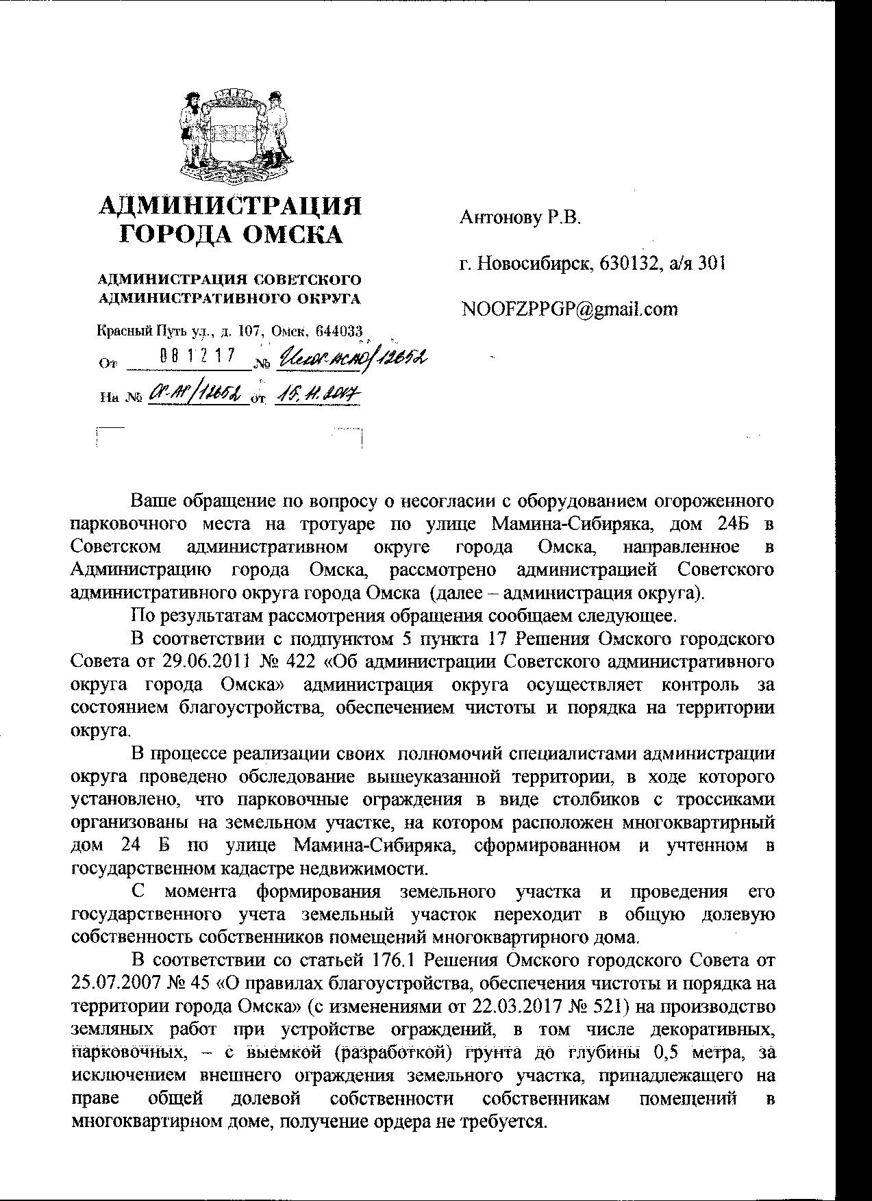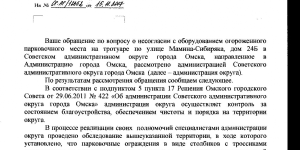 Номер жалобы:27046 Тип жалобы:Прочее Название объекта:Администрация Курчатовского Района Регион:Челябинская область Город:Челябинск Адрес:ул. Бейвеля, 43 Описание жалобы:Прошу поверить законность размещения рекламы на заборе автостоянки Статус: