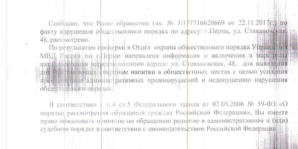 Номер жалобы:27038 Тип жалобы:Прочее Название объекта:"Шуры-муры" Регион:Пермский край Город:Пермь Адрес:Стахановская ул., 48 Описание жалобы:Город Пермь, ул. Стахановская-48, в доме на 1 этаже алкогольный магазин "Вина Кубани", все пьянствующие клиенты идут к нам во двор испражняться, а во дворе гуляют дети и мамочки с колясками. Плюсом ночной клуб "Шуры-Муры" - в 3-4 часа утра вываливает толпа посетителей и начинаются разборки: то девки пьяные истерят, то мужики дерутся, тут же пьют и писают, гул стоит до утра, а нам утром на работу - спать невозможно.