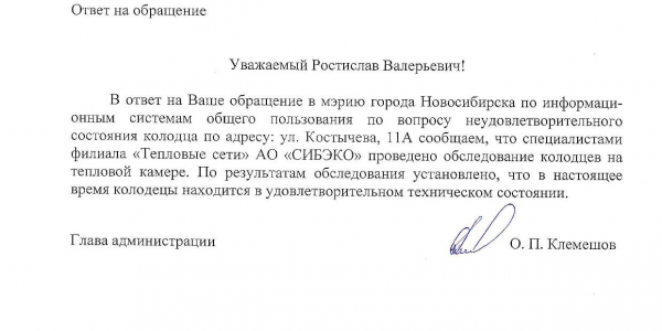 Номер жалобы:31046 Тип жалобы:Ямы во дворе Название объекта:Управляющая Компания Город:Новосибирск Адрес:Новосибирск, улица Костычева, 11А Описание жалобы:Комментарий Статус: