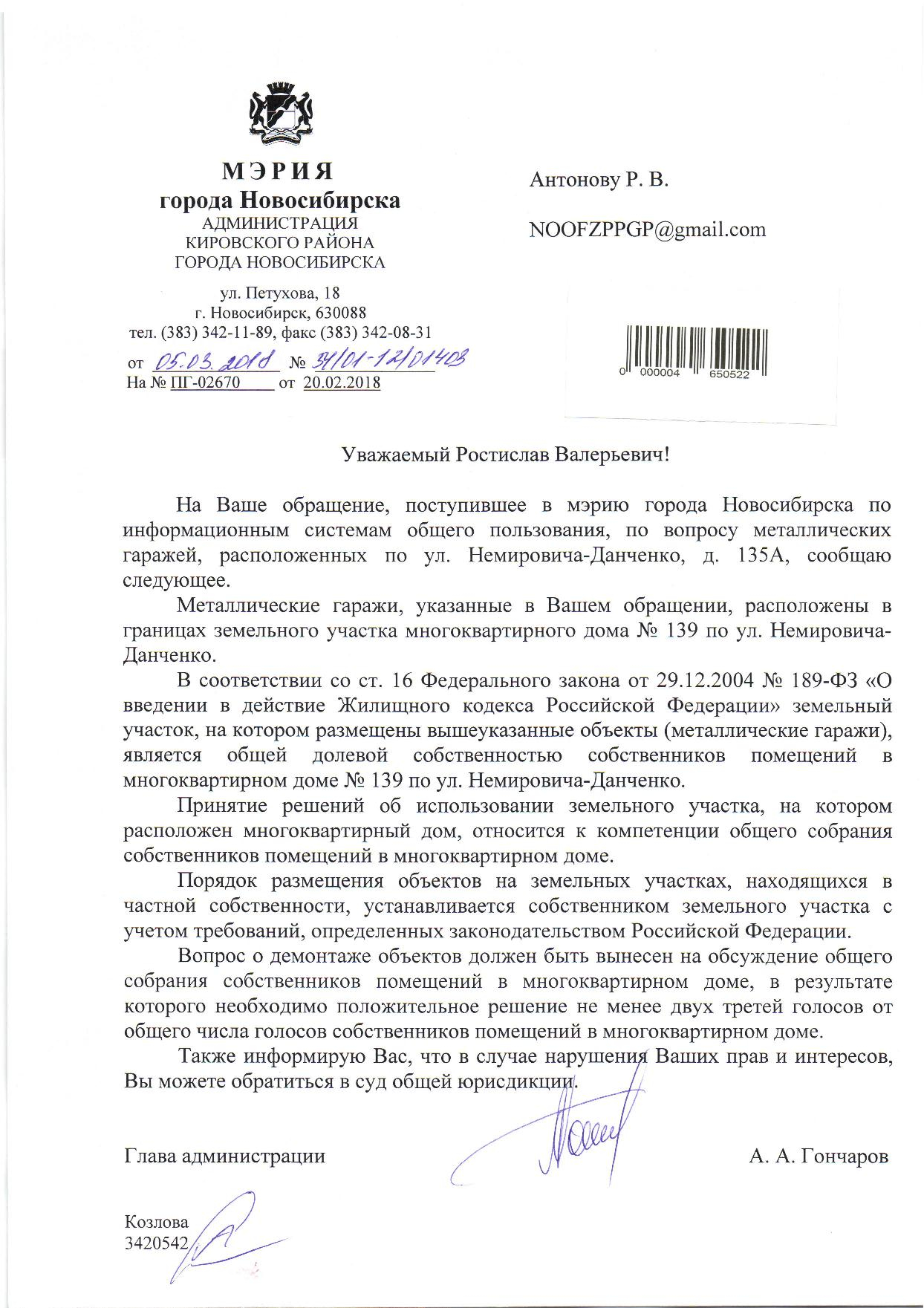 Номер жалобы:30479 Тип жалобы:Иные проблемы ЖКХ Название объекта:Управляющая Компания Город:Новосибирск Адрес:Новосибирск, улица Немировича-Данченко, 135 Описание жалобы:Гаражи Статус: