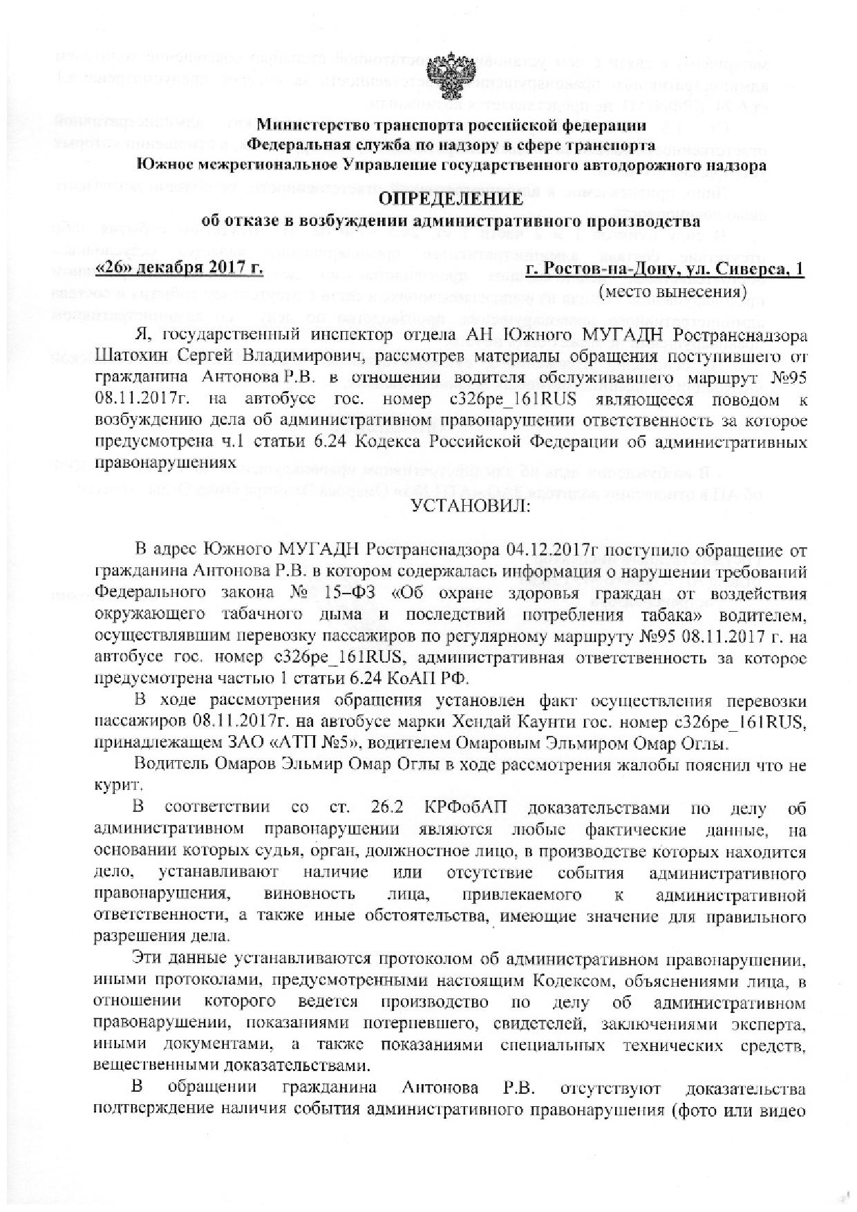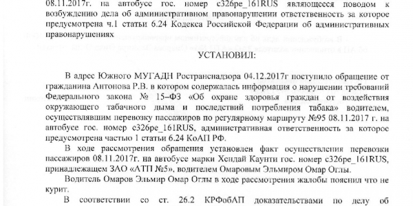 Место совершения нарушения Орбитальная. Курил в салоне, весь салон в дыму и прокуренный