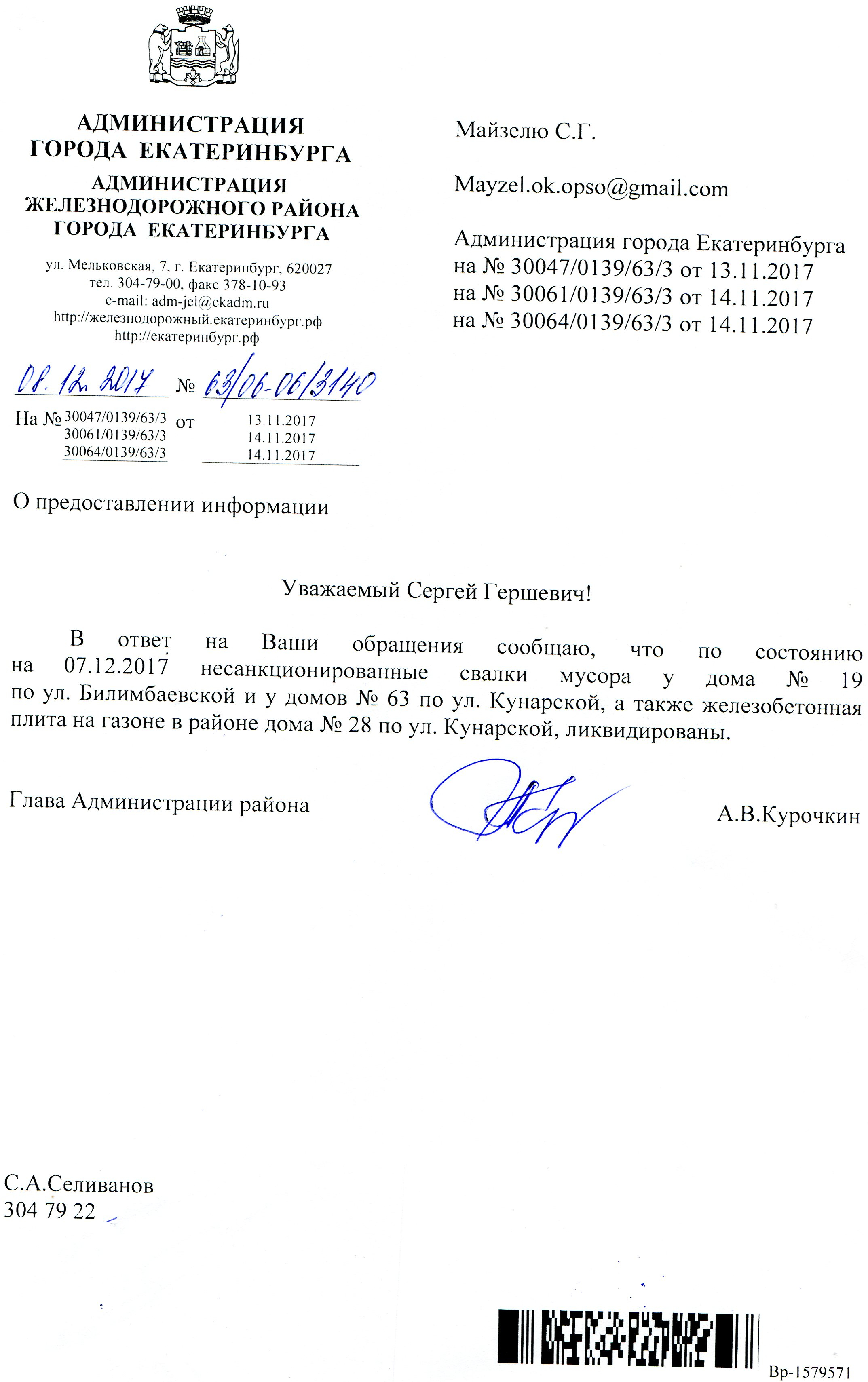 Номер жалобы:26898 Тип жалобы:Прочее Название объекта:МУГИСО Регион:Свердловская область Город:Екатеринбург Адрес:8 Марта, 13 Описание жалобы:Необходимо демонтировать нелегально установленные афишные стенды на обоих выходах из метро на станции "пл. 1905 года" Статус: