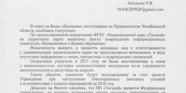 Номер жалобы:26842 Тип жалобы:Прочее Название объекта:Национальный парк «Таганай» Регион:Челябинская область Город:Челябинская область Адрес:(55.284726, 59.836101) Описание жалобы:1. На развилке нижней тропы и тропы на гору Монблан сломан указатель на гору Монблан (координаты указателя 55.284726 N, 59.836101 E).