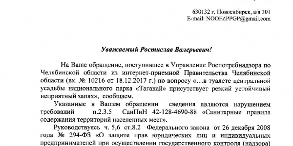 Номер жалобы:26843 Тип жалобы:Прочее Название объекта:Национальный парк «Таганай» Регион:Челябинская область Город:Златоуст Адрес:Верхняя тропа Описание жалобы:В туалете центральной усадьбы национального парка «Таганай» присутствует резкий устойчивый запах мочи. Статус: