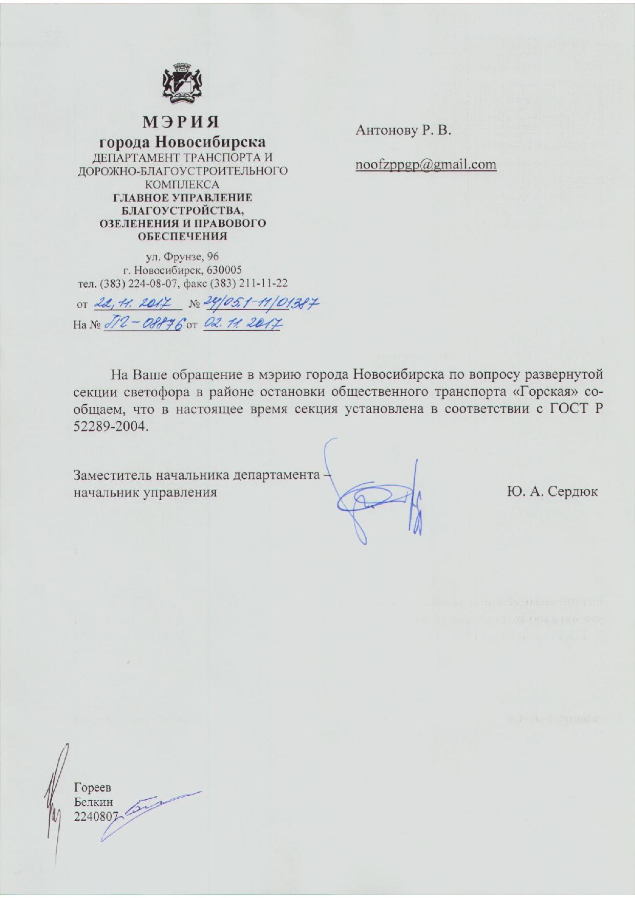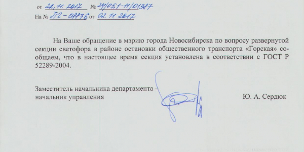 Номер жалобы:26416 Тип жалобы:Прочее Название объекта:Не Установлены Регион:Новосибирская область Город:Новосибирск Адрес:пр. Карла Маркса, 57 Описание жалобы:На ост. Горская пешеходный светофор повернут в непонятную сторону, его не видно. Статус: