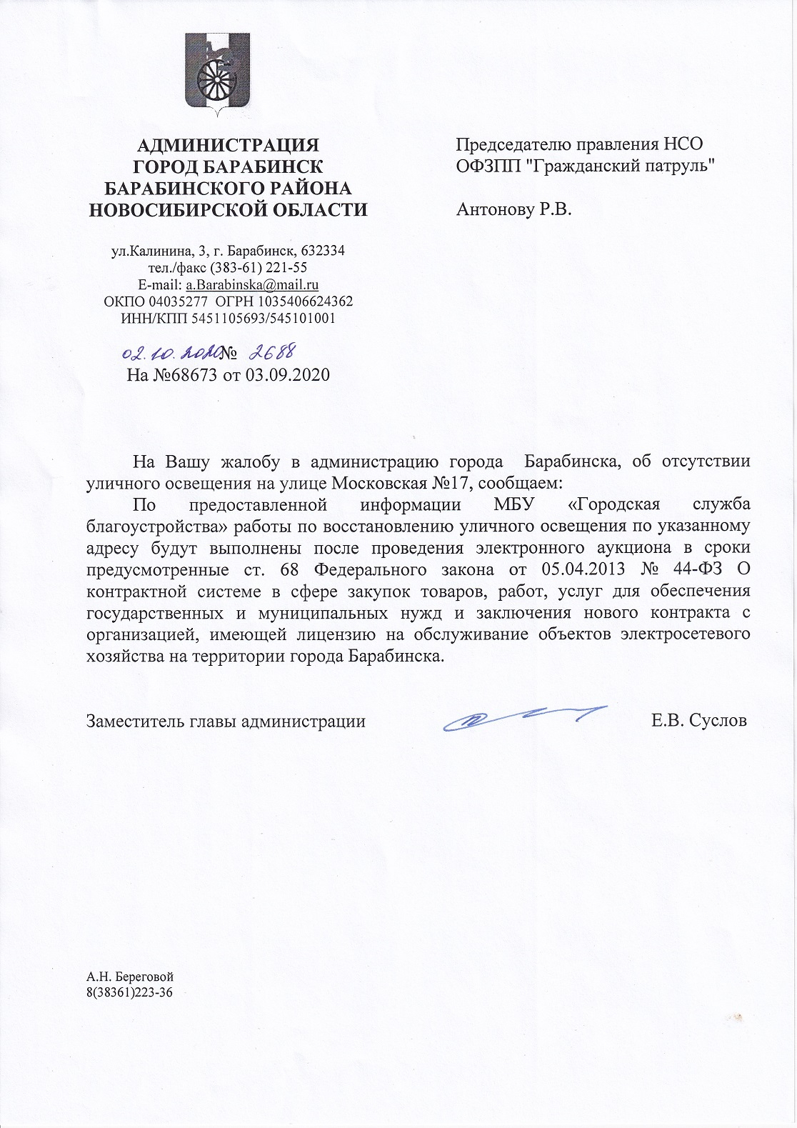 Номер жалобы:68672 Тип жалобы:Прочее Название объекта: Регион:Новосибирская область Город:Барабинск Адрес:улица Чапаева, 126 Описание жалобы:Нет освещения улицы. Сейчас школа началась дети будут ходить по темноте. Статус: