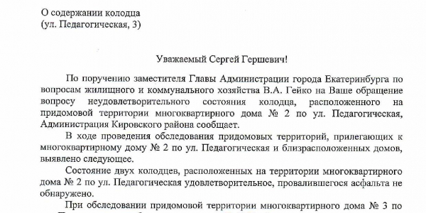 Номер жалобы:30015 Тип жалобы:Ямы во дворе Название объекта:Названия Нет Регион:Свердловская область Город:Екатеринбург Адрес:пр. Космонавтов, 80/3 Описание жалобы:Около колодца яма. Торчат ветки для обозначения. Не совсем с домом уверена или этот или параллельно 80/4. Статус: